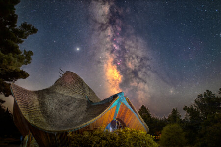 Acquisition: 4x 15s at ISO 3200 for sky, 1x 120s at ISO 400 for foreground.